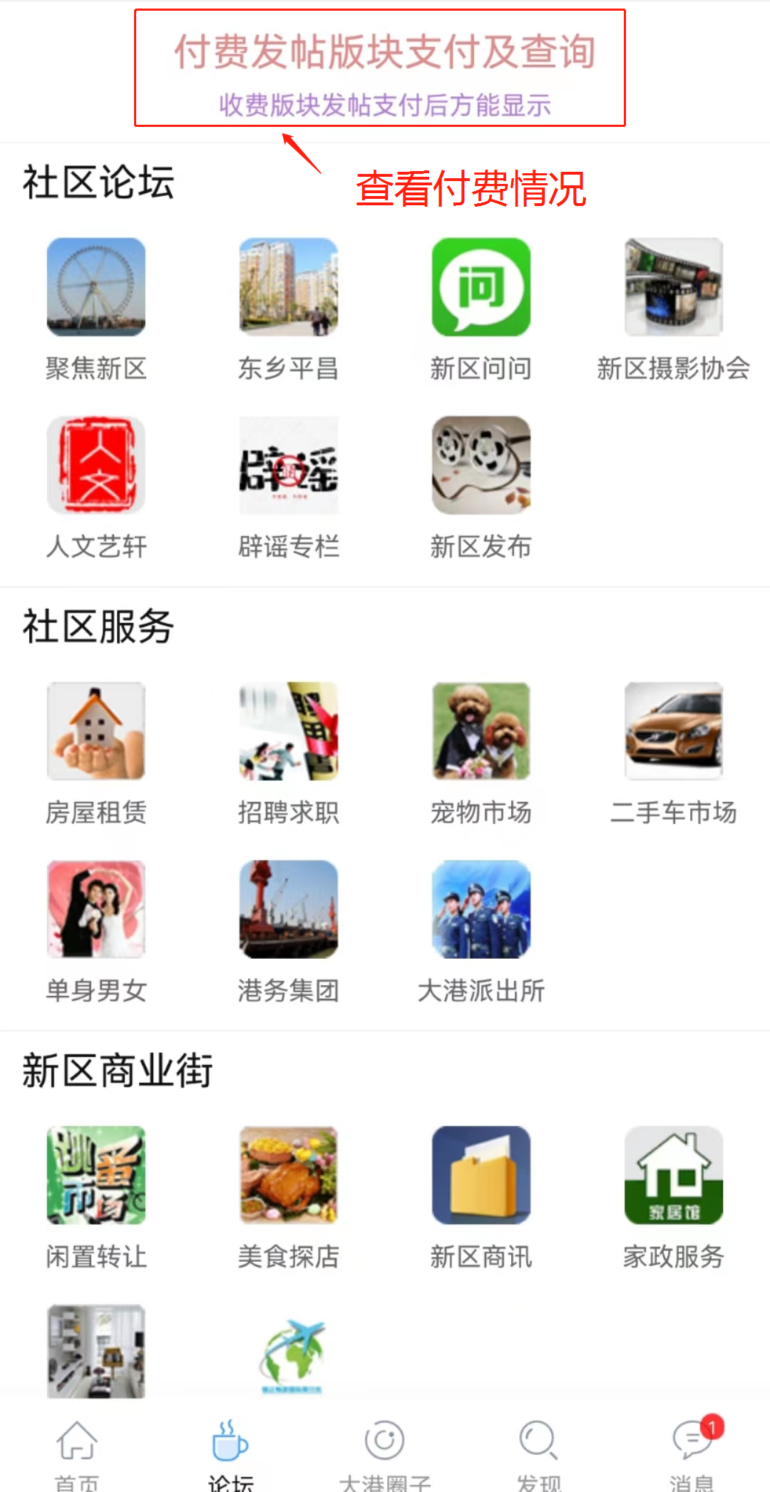 第四步:提交帖子后,请回到App首页进入“论坛”查看自己未支付的帖子