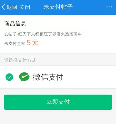 支付完成后你的帖子将显示在页面上,